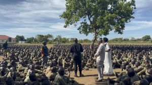 Private Security Providers Sacco officials addressing the trainees at Police Counter-terrorism Training School, Olilim today as part of the Sacco’s welfare programme for the Private security personnel.